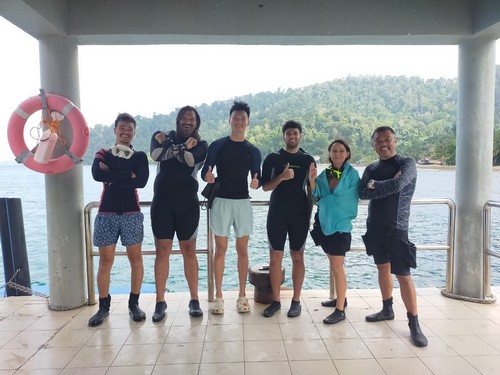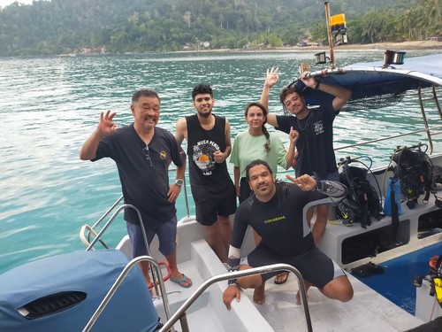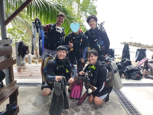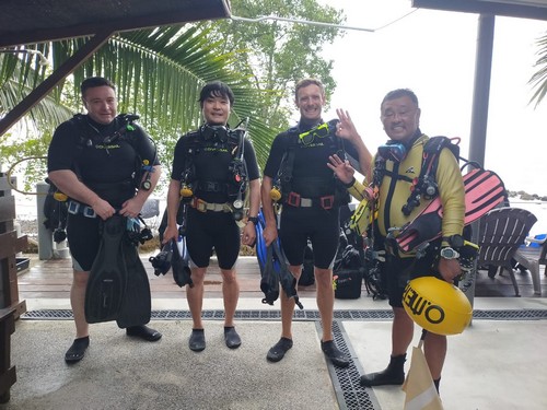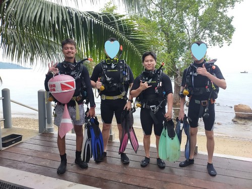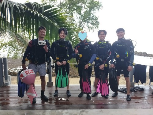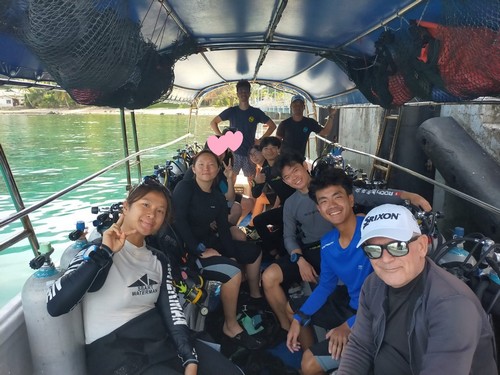 オープンウォーター講習最終日の生徒さんもご一緒に。みなさん、ライセンスの取得、おめでとうございます!