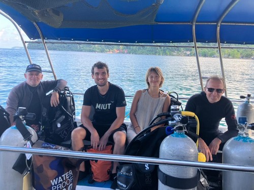 最終日はボートに乗って出発!無事に講習修了!お2人様が新たにダイバーとなられました。おめでとうございます