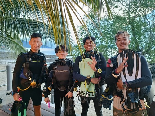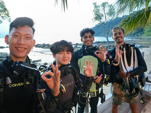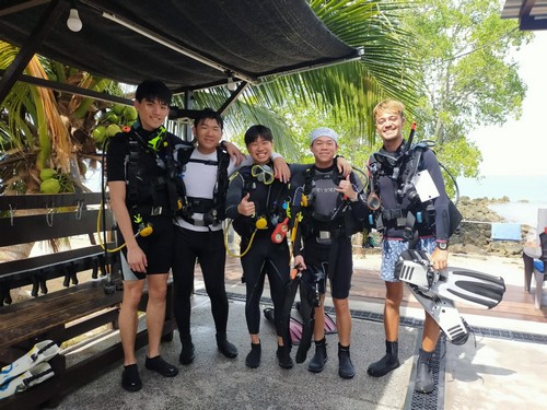 こちらはシンガポールよりお越しのリピーターさん方のSSIアドバンスドアドベンチュアラー講習!みなさん、ライセンスのランクアップ、おめでとうございます